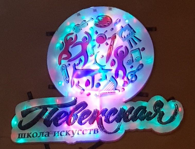 В преддверии Нового года на фасаде здания Певекской школы искусств установлен световой логотип нашего образовательного учреждения. Он выглядит ярко и привлекательно. В центре просматривается светящийся скрипичный ключ – символ музыкального творчества. А ещё хорошо видны пляшущие человечки, палитра, мольберт, карандаш и музыкальные инструменты – одним словом отражены все направления развития детей, существующие в Певекской школе искусств – музыкальное, хореографическое и изобразительное.