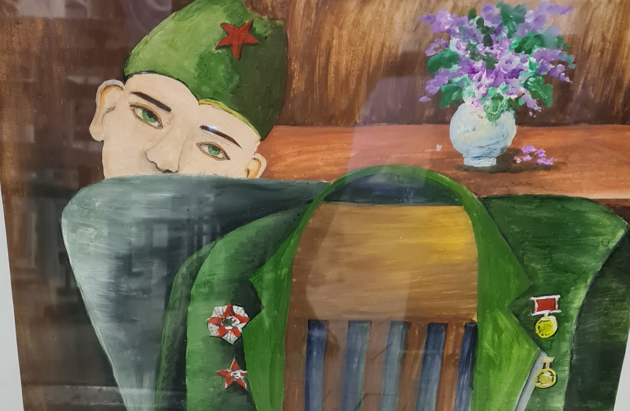 Несколько работ – это копии картин художников, которые писали на тему Великой Отечественной войны. «Дети войны», «Память о дедушке», «Провожающая мать» … Среди картин о войне, особое место занимает образ матери. Название одной из работ «Сквозь времена всегда с тобой». Оно исключительно подходит к серии рисунков, посвященных мамам, сыновья которых не вернулись.