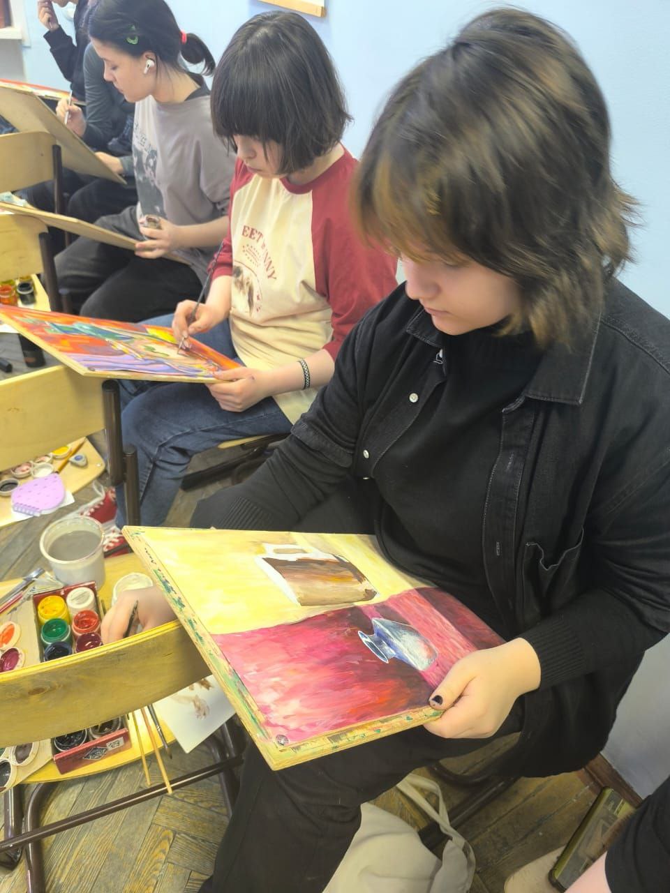 Ребята трудились с самого утра и закончили свои работы только в районе 17 вечера с перерывом на полуторачасовой обед. Сегодня живописцы должны были «перенести» на бумагу выстроенный натюрморт, а декораторы-прикладники изобразить своё будущее изделие на альбомном листе. Да так точно они должны это сделать! По форме и цвету рисунок не должен отличаться от завтрашнего изделия, которое ребята будут выполнять опять в течение целого дня.