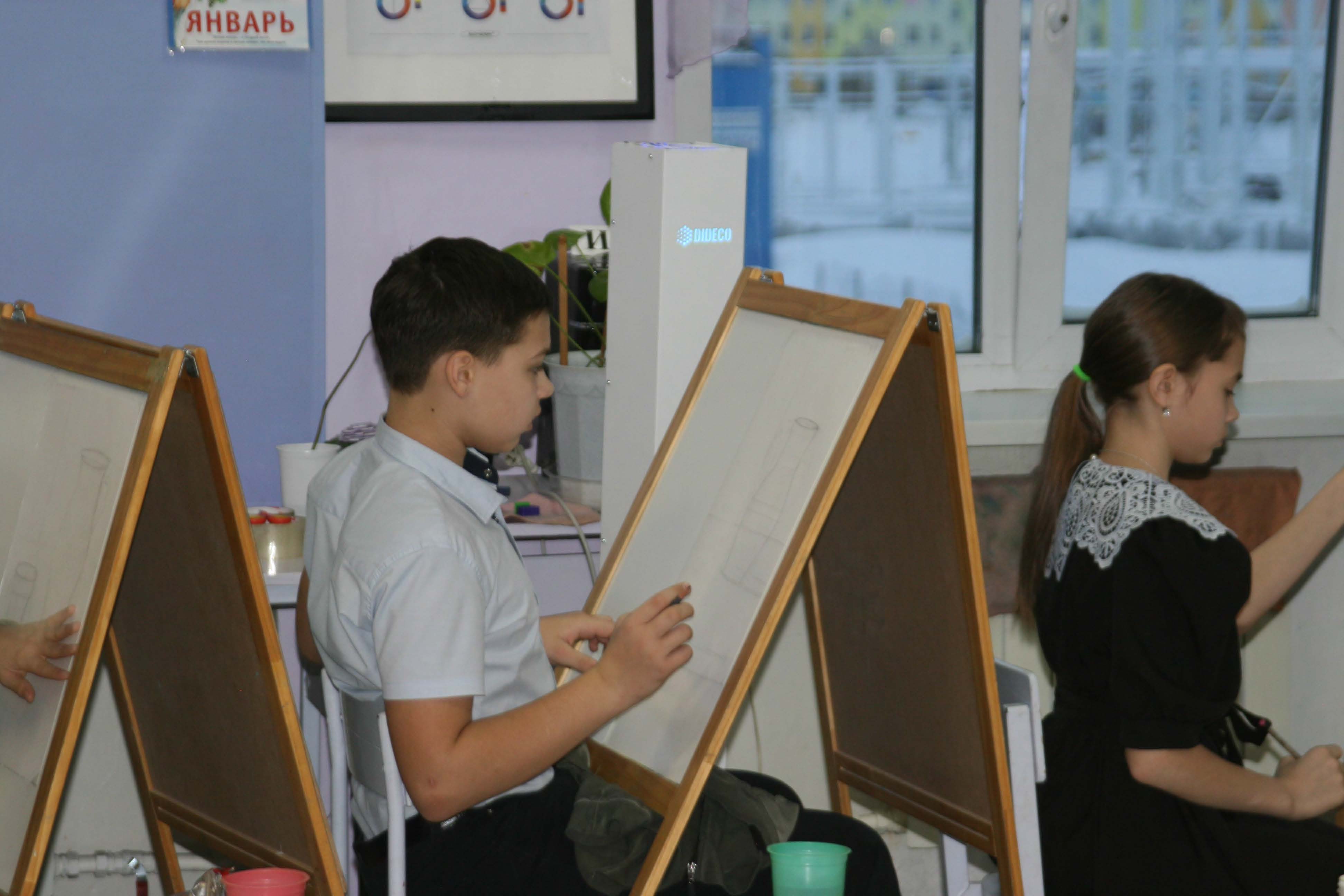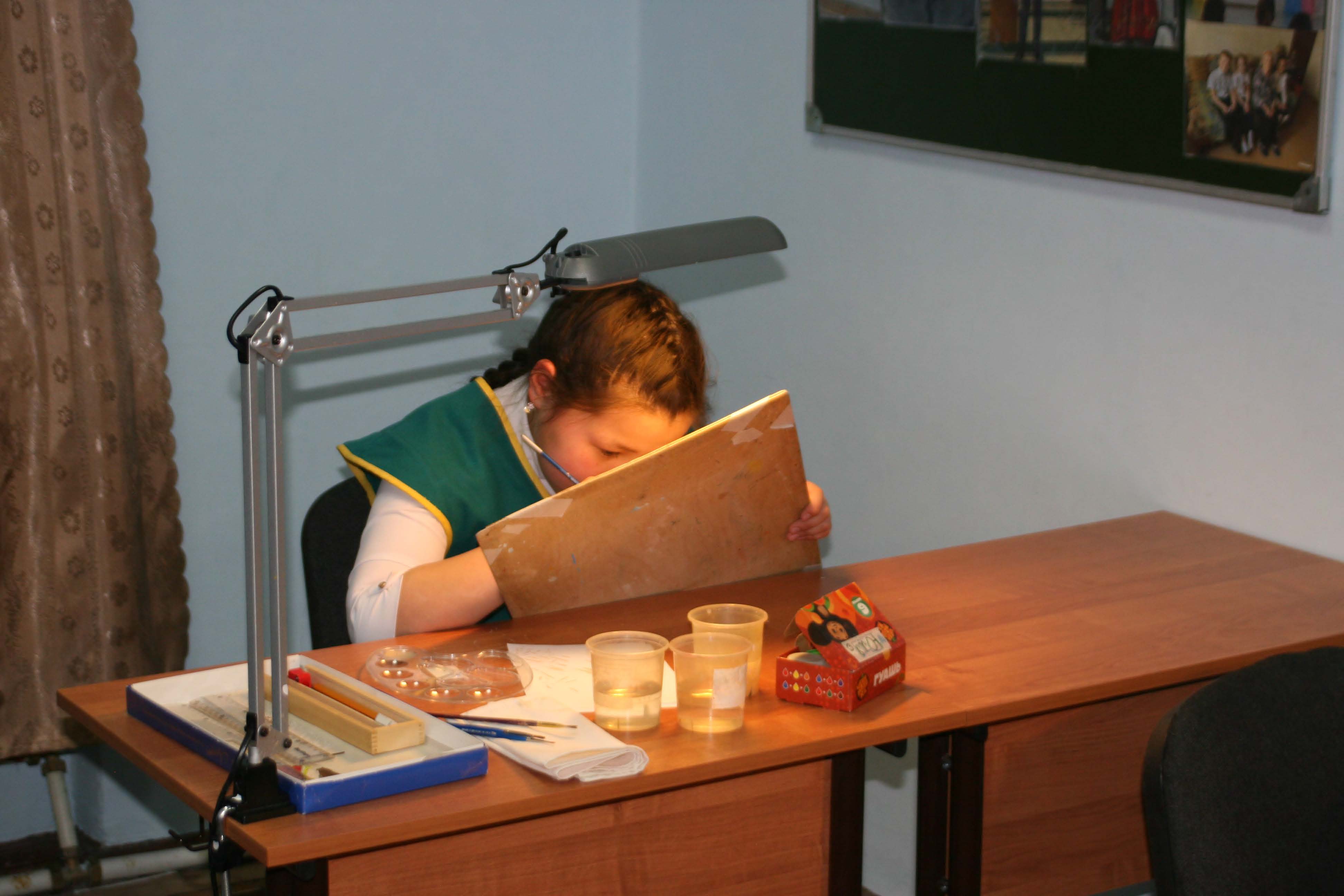 В это же время ребята, участвующие в номинации «Юный художник» (Живопись), а также «Резьба по кости» и «Художественная обработка кожи и меха», в разных аудиториях приступили к созданию своих работ.