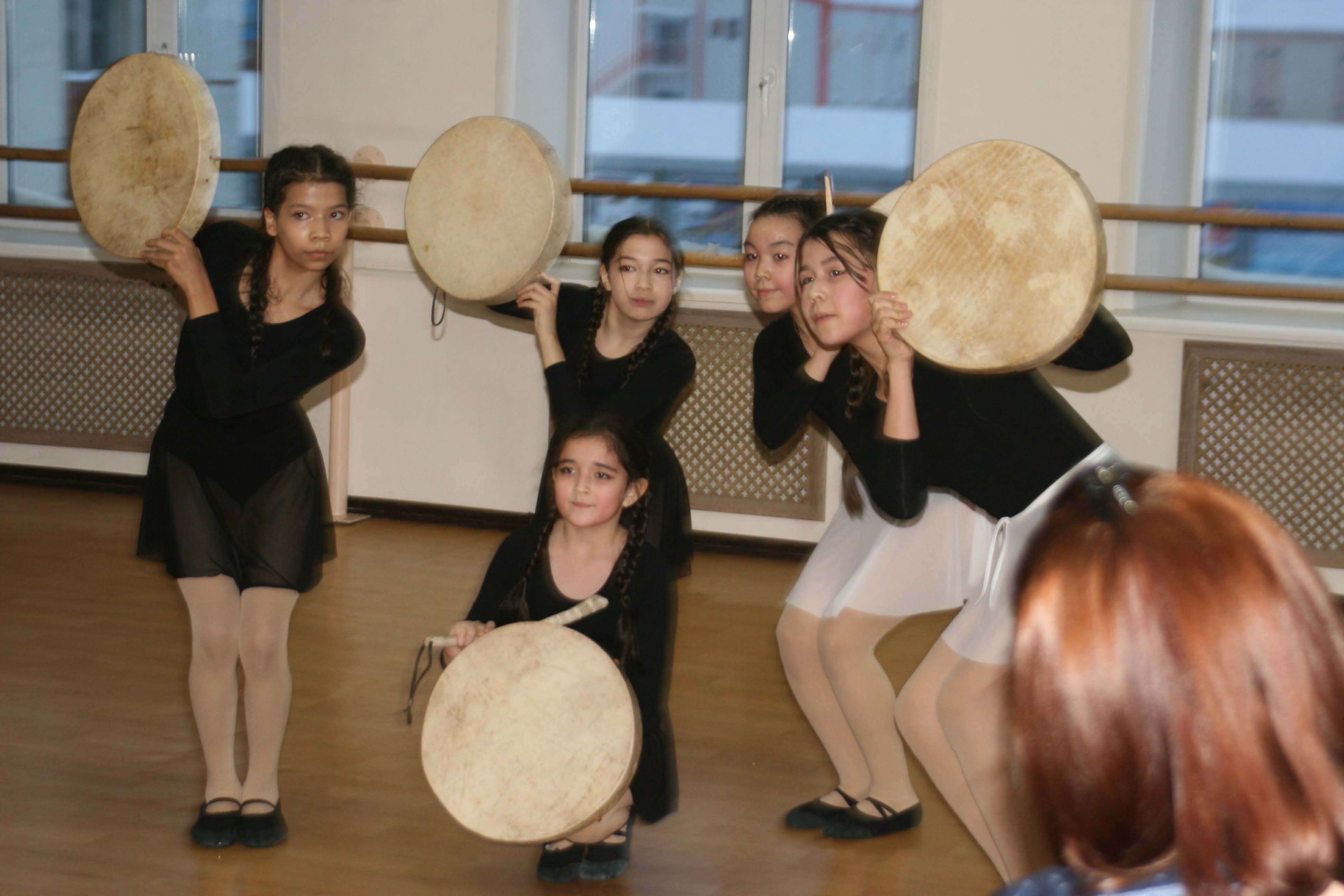 После обеденного перерыва в малом зале начался первый тур в номинации «Юный исполнитель фольклора народов Чукотки» - хореография (ансамблевое исполнение) и в номинации «Юный танцовщик»: академическая хореография (ансамблевое исполнение). Здесь своё мастерство продемонстрировали дети из фольклорного ансамбля «Эйнэткун» и средней группы образцового художественного коллектива «Лукоморья». И тем, и другим участникам нужно было подготовить и показать экзерсис (упражнения, направленные на совершенствование техники в балете или другом танце). Девочки из «Эйнэткун» представили фольклорный экзерсис, показав основные танцевальные движения рук, ног, головы в танцах Чукотки, движения шеи, прыжкового танца, образы животных и птиц, а также традиционный танец народов Чукотки.